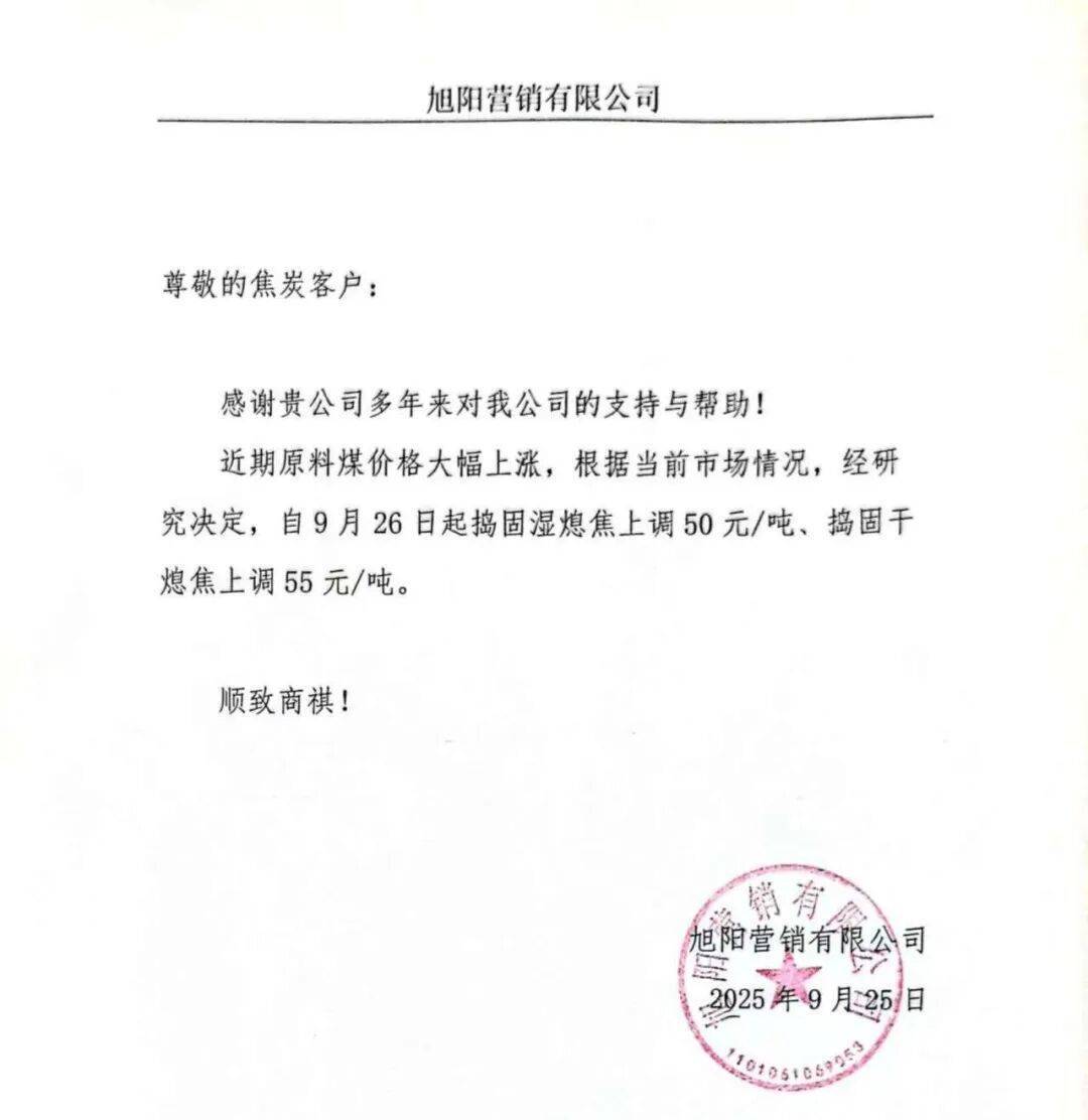 报道中提到与会企业下决议:一是自9月26日零时起,对钢厂客户执行捣固湿熄焦价格上调50元/吨,捣固干熄焦价格上调55元/吨,顶装湿熄焦价格上调80元/吨,顶装干熄焦价格上调85元/吨。二是建议焦炭全行业限产30%以上,对未接受的客户,采取减量或停止发货的方式,共同维护行业利益。建议全体焦化企业坚持“亏损不生产、亏损不销售、不赊销”原则,坚决维护行业合理利润水平和健康发展秩序。