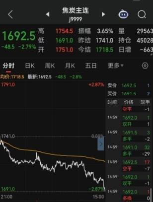 值得注意的是,9月25日夜盘焦炭主力合约高开0.57%,随后开始震荡下行,截至今日收盘焦炭主力合约报1692.5元/吨,下跌2.79%,此外焦煤价格也震荡走弱,截至收盘焦煤价格报1196.5元/吨。